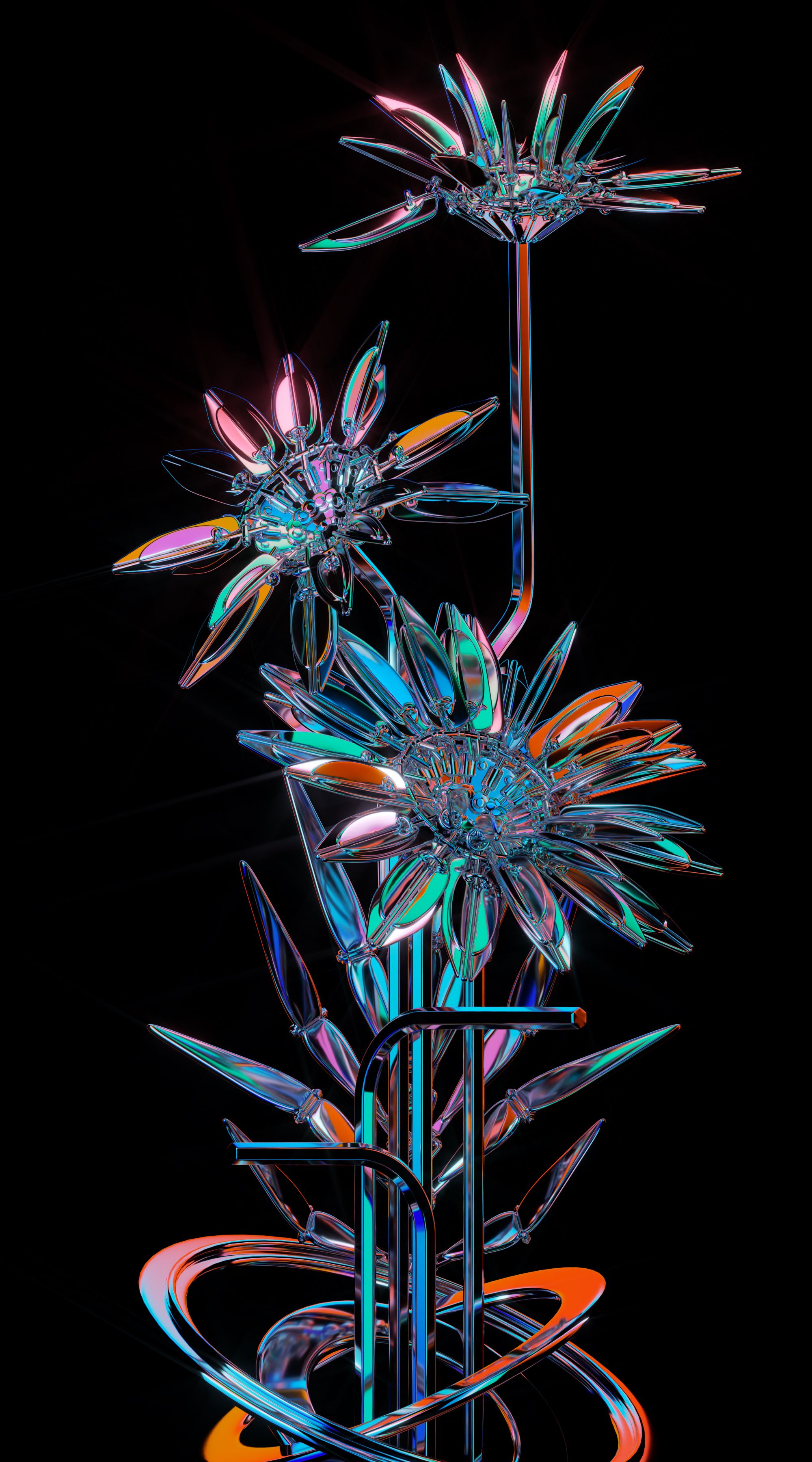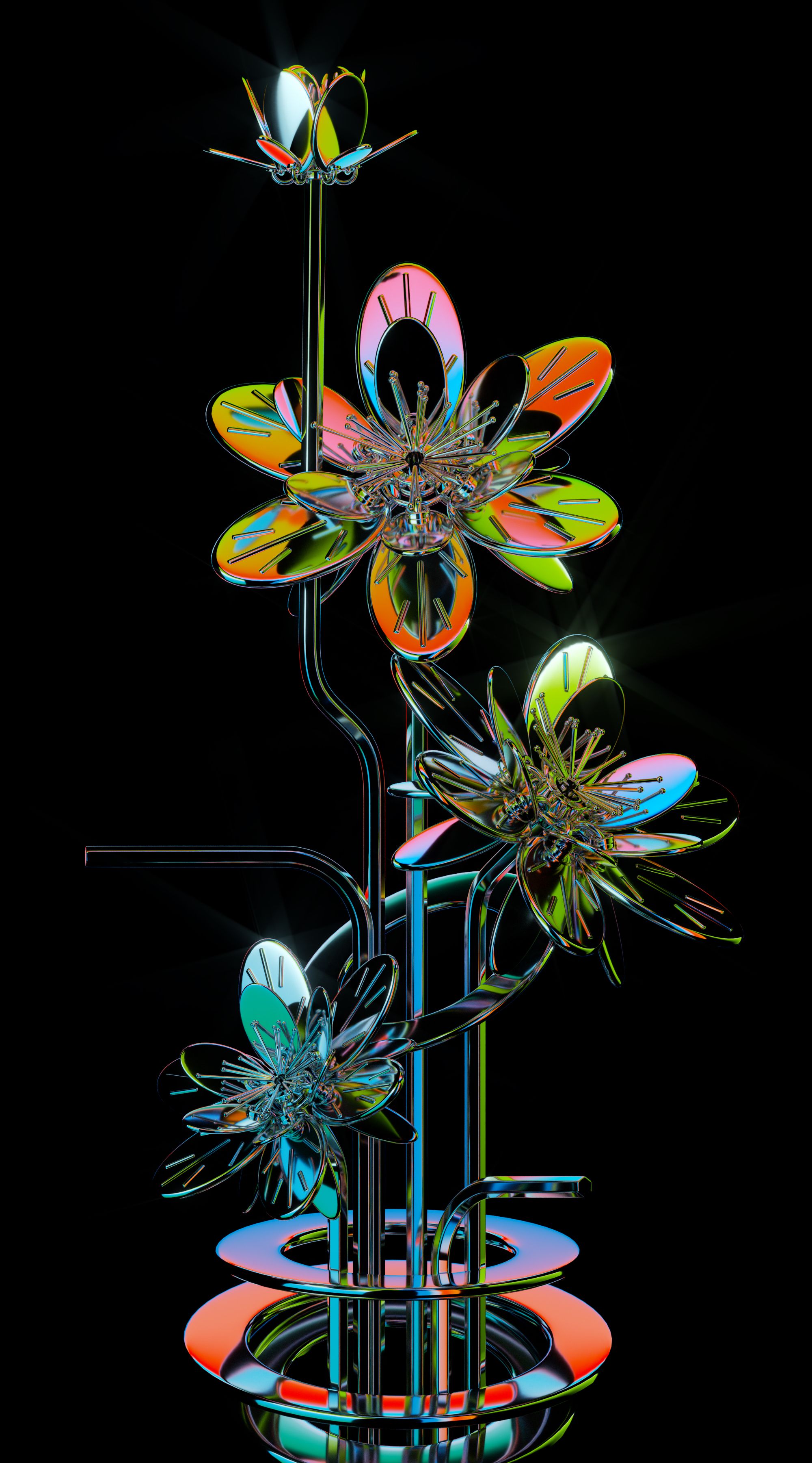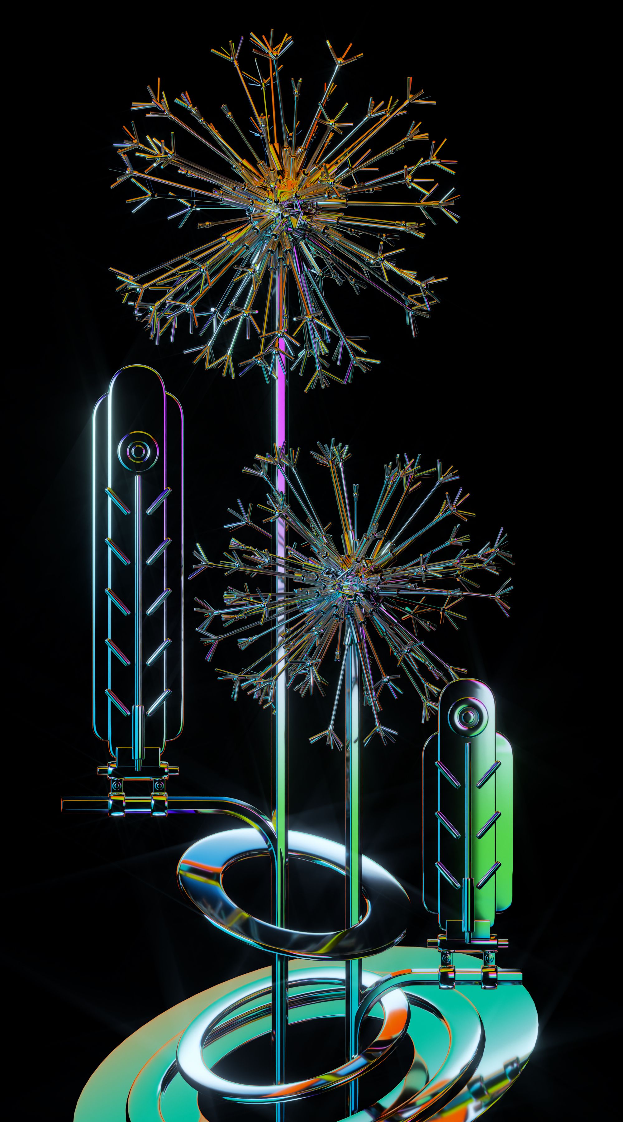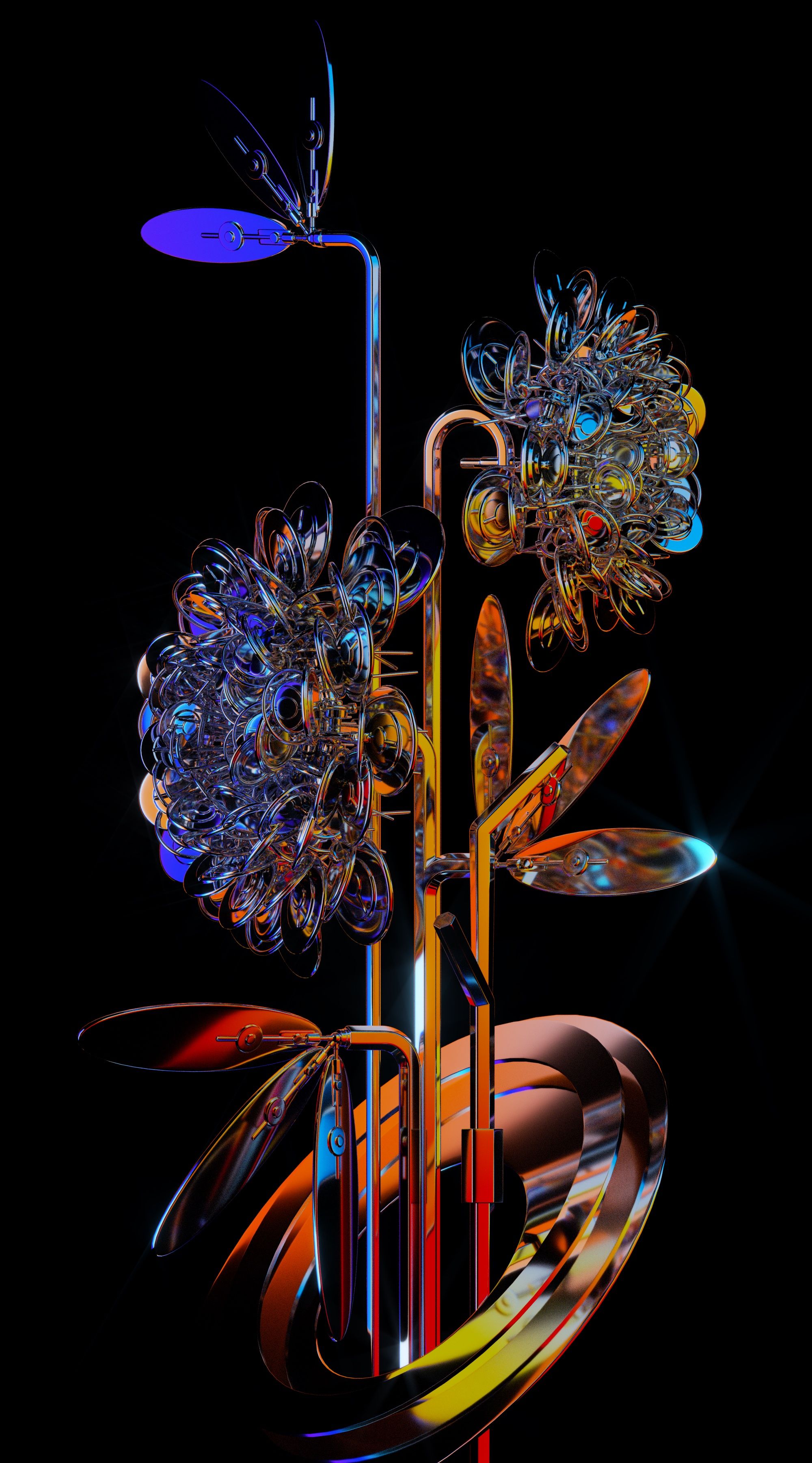 This is not necessarily a "dichotomy" in the Western context, but rather a dialectical idea of "merging two into one" that inherited from traditional Chinese philosophy. “Inorganic Flowers" appears to have a very regular shape and metallic texture. These flowers linked to each other by a simple mechanical structure, all of which are characteristics of their inorganic and industrial nature. However, the “Inorganic Flowers" at the same time display an organic property that follows the laws of nature, and in the seemingly eternal movement of blooming and withering, ”Inorganic Flowers” illustrates a oriental sense of beauty that evolves from the concept of "all things being one".