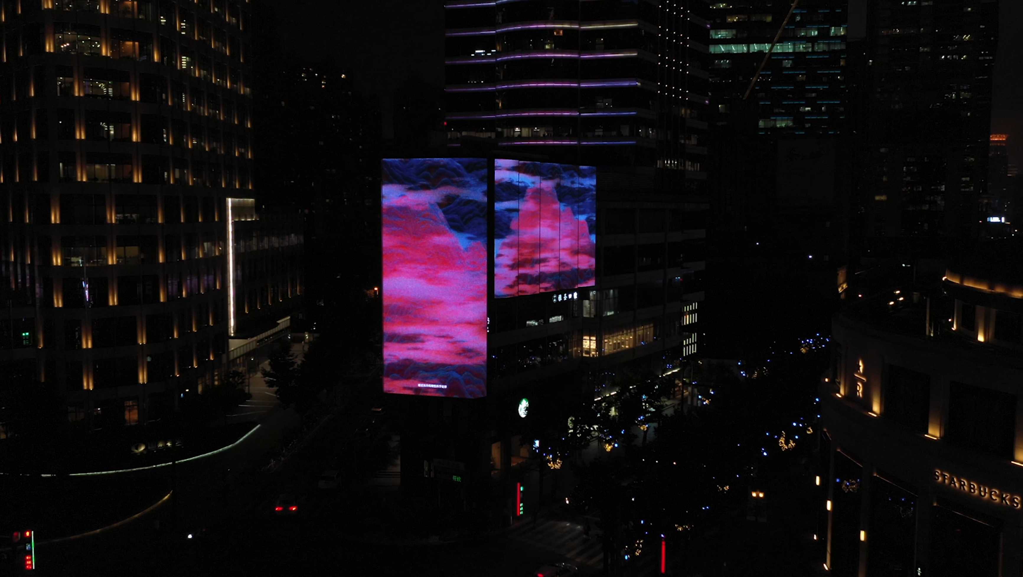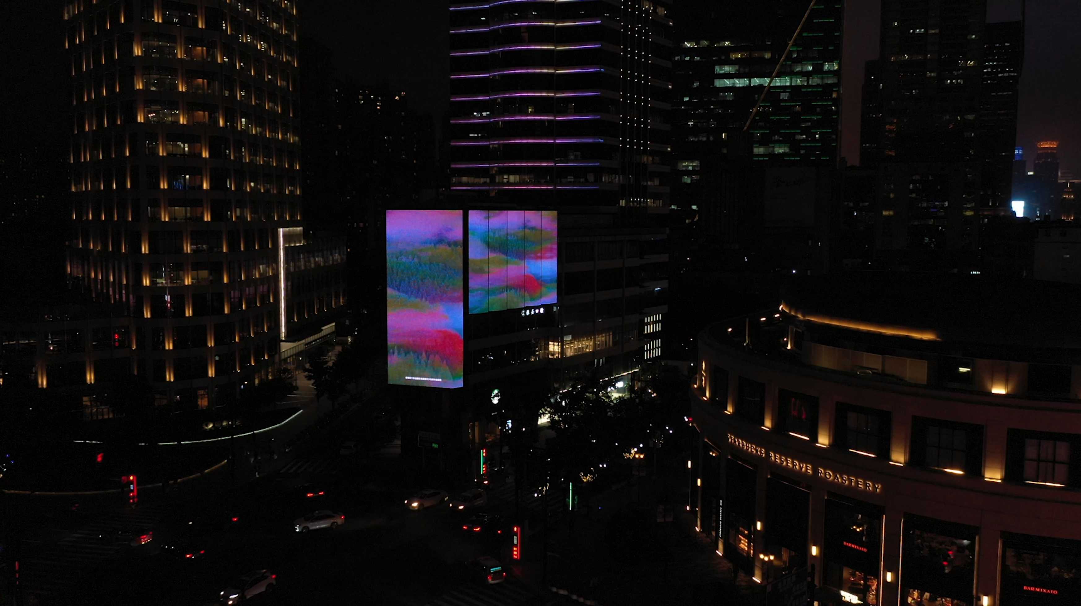 与保利当代艺术的合作,《山水》在上海太古汇附近的大屏进行展出。